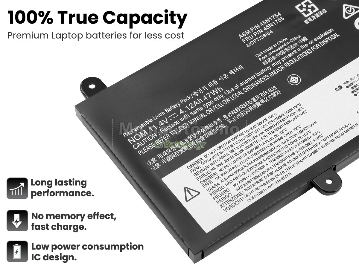 Δεν συνιστάται η αφαίρεση της μπαταρίας, έτσι ώστε να αποφευχθεί η συνέχιση της λειτουργίας της τροφοδοσίας εναλλασσόμενου ρεύματος σε περίπτωση ξαφνικής διακοπής, χωρίς απώλεια δεδομένων. Αν αφαιρεθεί, συνιστάται η περιτύλιξη της μπαταρίας Lenovo 45N1755 στην πλαστική μεμβράνη και η τοποθέτηση σε στεγνό και δροσερό μέρος, και να θυμάστε να χρησιμοποιείτε την μπαταρία τουλάχιστον μια φορά το μήνα και να την φορτίζετε για να αποφύγετε την απώλεια δράσης της μπαταρίας.
