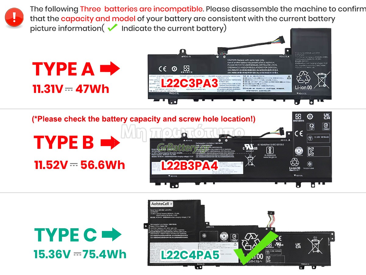 Δεν υπάρχει καμία διαφορά, εκτός από το ότι οι μπαταρίες μας δεν φέρουν ετικέτα. Όλες οι επαναφορτιζόμενες μπαταρίες που είναι διαθέσιμες στο xxx.com είναι εφεδρικές μπαταρίες του αρχικού κατασκευαστή. Χρησιμοποιούν τα ίδια έξυπνα τσιπ και στοιχεία όπως οι αυθεντικές, οπότε η απόδοση και η συμβατότητα της μπαταρίας Lenovo IdeaPad SLIM 5 16ABR8-82XG0024BM είναι παρόμοια ή και καλύτερη από την αυθεντικήεπαναφορτιζόμενη μπαταρία. Αυτό θα αφαιρέσει το τίμημα της μάρκας, διατηρώντας ταυτόχρονα την ποιότητα. Πολλοί καταναλωτές πιστεύουν ότι οι αυθεντικές μπαταρίες λειτουργούν καλύτερα. Στην πραγματικότητα, πολλές μάρκες μπαταριών για φορητούς υπολογιστές κατασκευάζονται επίσης από εξαρτήματα από τρίτους (όπως Samsung, LG, κ.λπ.). Ακριβώς όπως η CPU ενός φορητού υπολογιστή δεν παράγεται από τηνίδιαεταιρεία υπολογιστών.