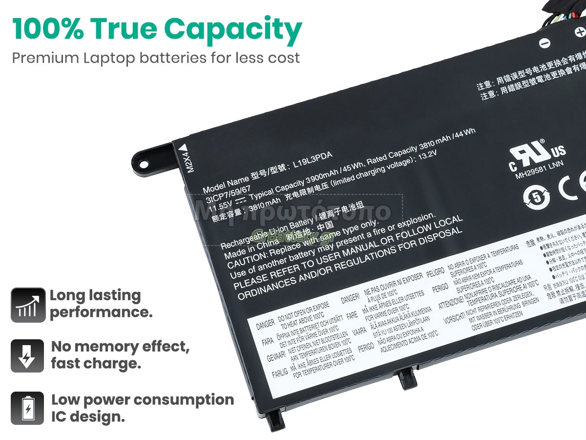 Η αντικατεστημένη μπαταρία του Lenovo L19L3PDA είναι εντελώς νέα. Ποτέ δεν θα πουλήσουμε χρησιμοποιημένες μπαταρίες ή ανακαινισμένες μπαταρίες. Οι μπαταρίες μας είναι κατασκευασμένες από τα καλύτερα στοιχεία και εξαρτήματα