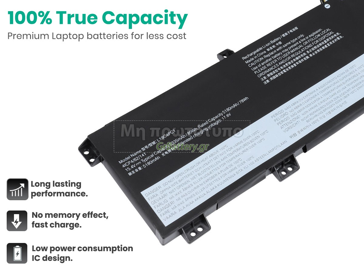 Δεν συνιστάται η αφαίρεση της μπαταρίας, έτσι ώστε να αποφευχθεί η συνέχιση της λειτουργίας της τροφοδοσίας εναλλασσόμενου ρεύματος σε περίπτωση ξαφνικής διακοπής, χωρίς απώλεια δεδομένων. Αν αφαιρεθεί, συνιστάται η περιτύλιξη της μπαταρίας Lenovo L19M4PC2 στην πλαστική μεμβράνη και η τοποθέτηση σε στεγνό και δροσερό μέρος, και να θυμάστε να χρησιμοποιείτε την μπαταρία τουλάχιστον μια φορά το μήνα και να την φορτίζετε για να αποφύγετε την απώλεια δράσης της μπαταρίας.