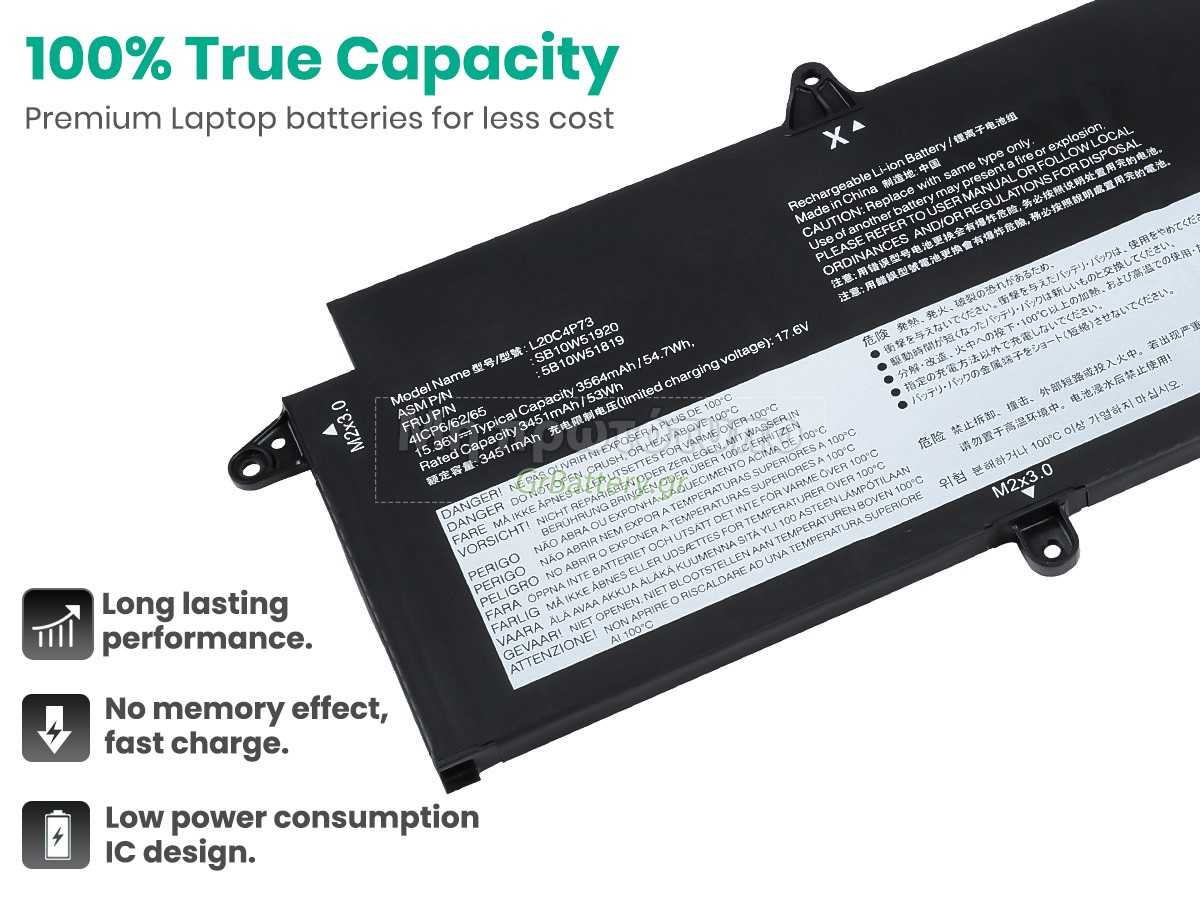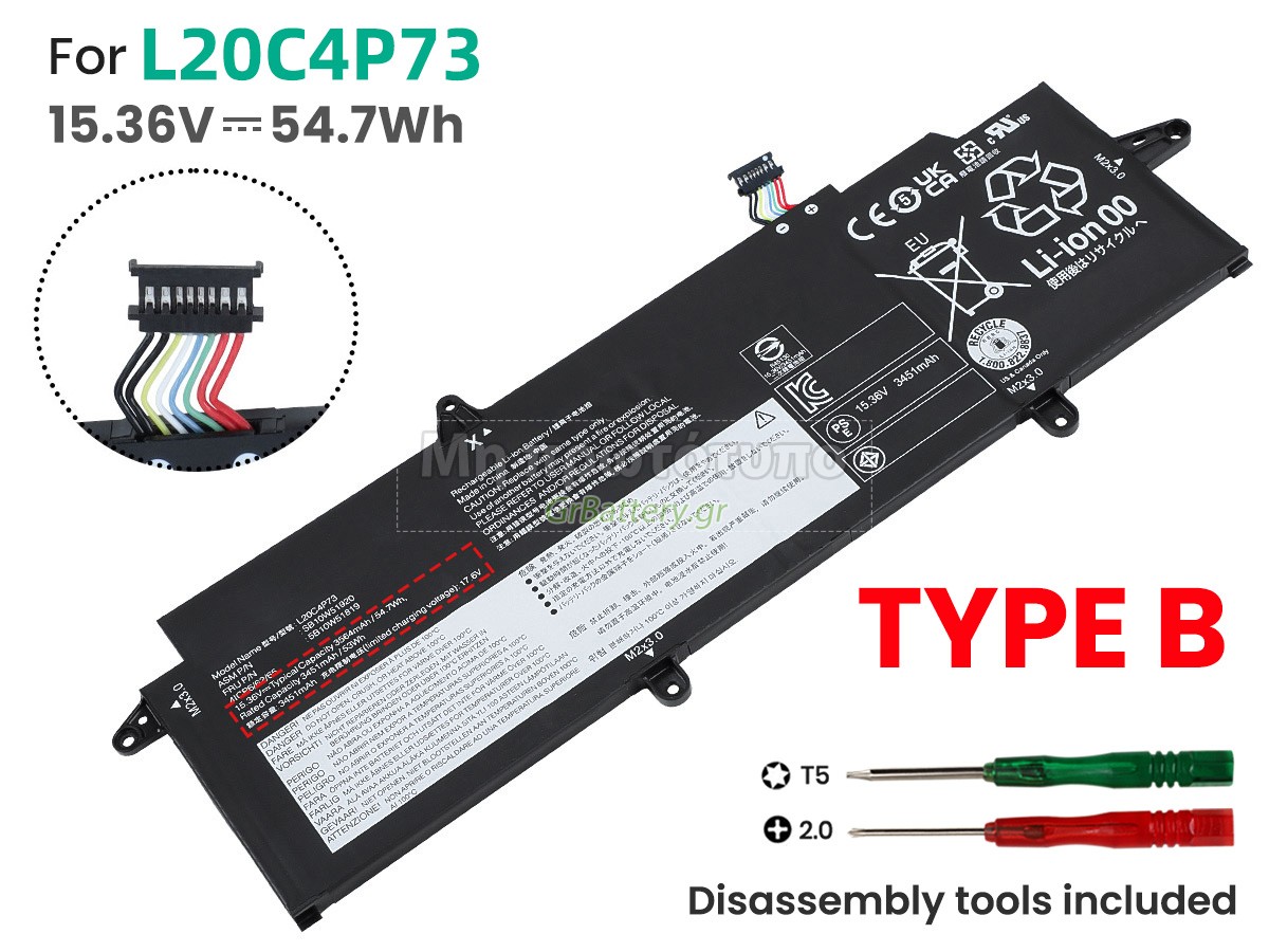 Δεν συνιστάται η αφαίρεση της μπαταρίας, έτσι ώστε να αποφευχθεί η συνέχιση της λειτουργίας της τροφοδοσίας εναλλασσόμενου ρεύματος σε περίπτωση ξαφνικής διακοπής, χωρίς απώλεια δεδομένων. Αν αφαιρεθεί, συνιστάται η περιτύλιξη της μπαταρίας Lenovo L20M4P73 στην πλαστική μεμβράνη και η τοποθέτηση σε στεγνό και δροσερό μέρος, και να θυμάστε να χρησιμοποιείτε την μπαταρία τουλάχιστον μια φορά το μήνα και να την φορτίζετε για να αποφύγετε την απώλεια δράσης της μπαταρίας.