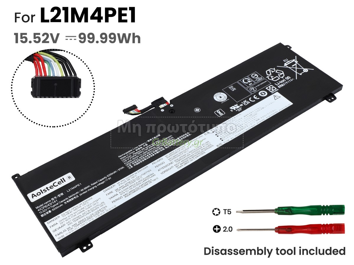 Δεν συνιστάται η αφαίρεση της μπαταρίας, έτσι ώστε να αποφευχθεί η συνέχιση της λειτουργίας της τροφοδοσίας εναλλασσόμενου ρεύματος σε περίπτωση ξαφνικής διακοπής, χωρίς απώλεια δεδομένων. Αν αφαιρεθεί, συνιστάται η περιτύλιξη της μπαταρίας Lenovo L21C4PE1 στην πλαστική μεμβράνη και η τοποθέτηση σε στεγνό και δροσερό μέρος, και να θυμάστε να χρησιμοποιείτε την μπαταρία τουλάχιστον μια φορά το μήνα και να την φορτίζετε για να αποφύγετε την απώλεια δράσης της μπαταρίας.