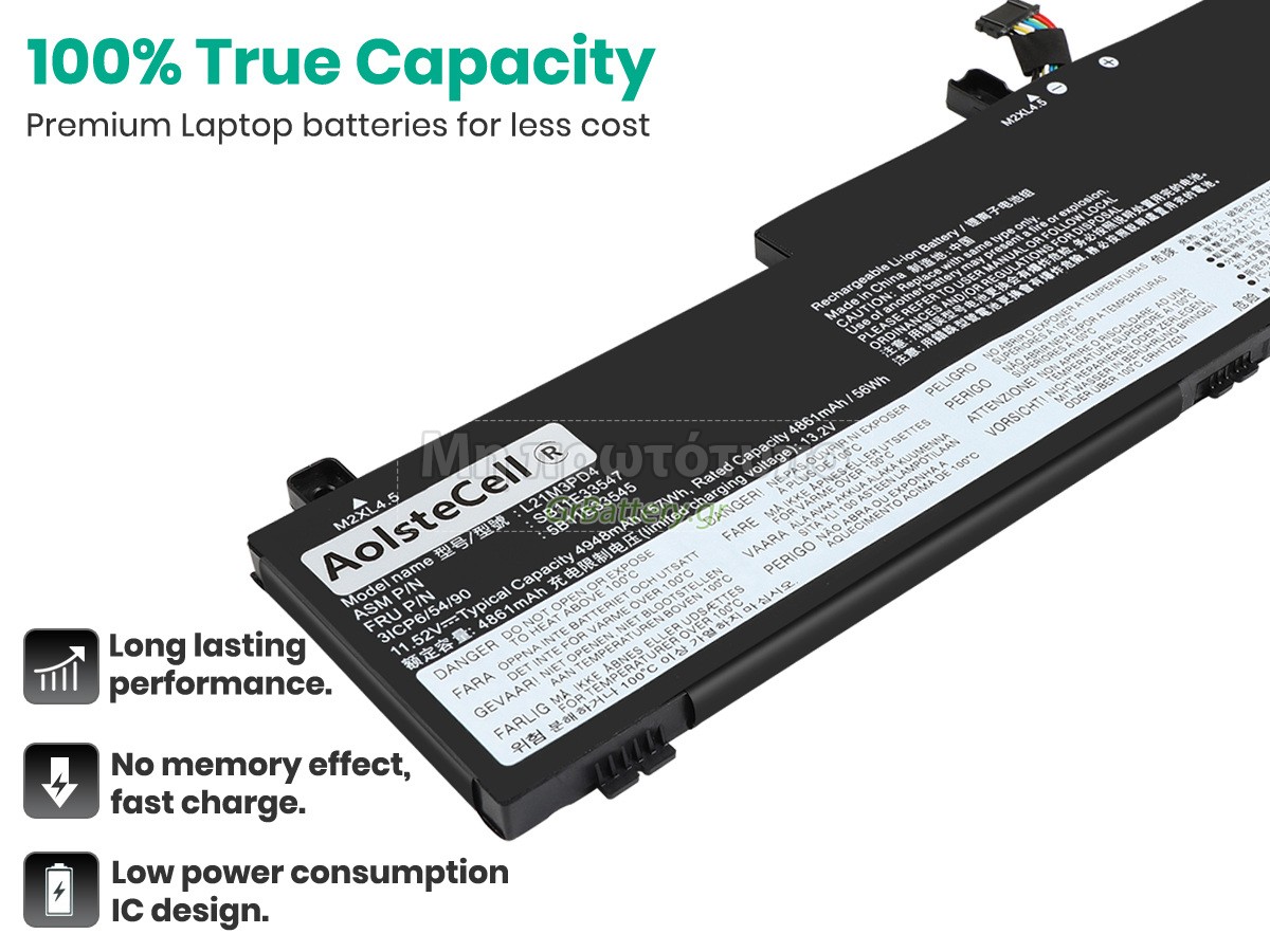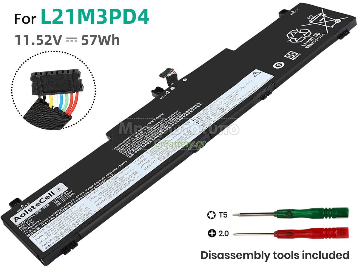 Δεν συνιστάται η αφαίρεση της μπαταρίας, έτσι ώστε να αποφευχθεί η συνέχιση της λειτουργίας της τροφοδοσίας εναλλασσόμενου ρεύματος σε περίπτωση ξαφνικής διακοπής, χωρίς απώλεια δεδομένων. Αν αφαιρεθεί, συνιστάται η περιτύλιξη της μπαταρίας Lenovo L21L3PD4 στην πλαστική μεμβράνη και η τοποθέτηση σε στεγνό και δροσερό μέρος, και να θυμάστε να χρησιμοποιείτε την μπαταρία τουλάχιστον μια φορά το μήνα και να την φορτίζετε για να αποφύγετε την απώλεια δράσης της μπαταρίας.