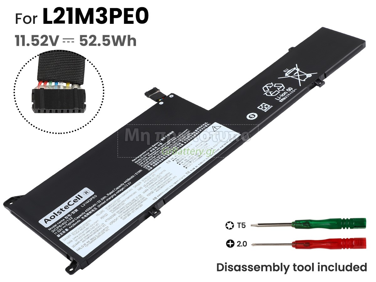 Δεν συνιστάται η αφαίρεση της μπαταρίας, έτσι ώστε να αποφευχθεί η συνέχιση της λειτουργίας της τροφοδοσίας εναλλασσόμενου ρεύματος σε περίπτωση ξαφνικής διακοπής, χωρίς απώλεια δεδομένων. Αν αφαιρεθεί, συνιστάται η περιτύλιξη της μπαταρίας Lenovo L21M3PE1 στην πλαστική μεμβράνη και η τοποθέτηση σε στεγνό και δροσερό μέρος, και να θυμάστε να χρησιμοποιείτε την μπαταρία τουλάχιστον μια φορά το μήνα και να την φορτίζετε για να αποφύγετε την απώλεια δράσης της μπαταρίας.