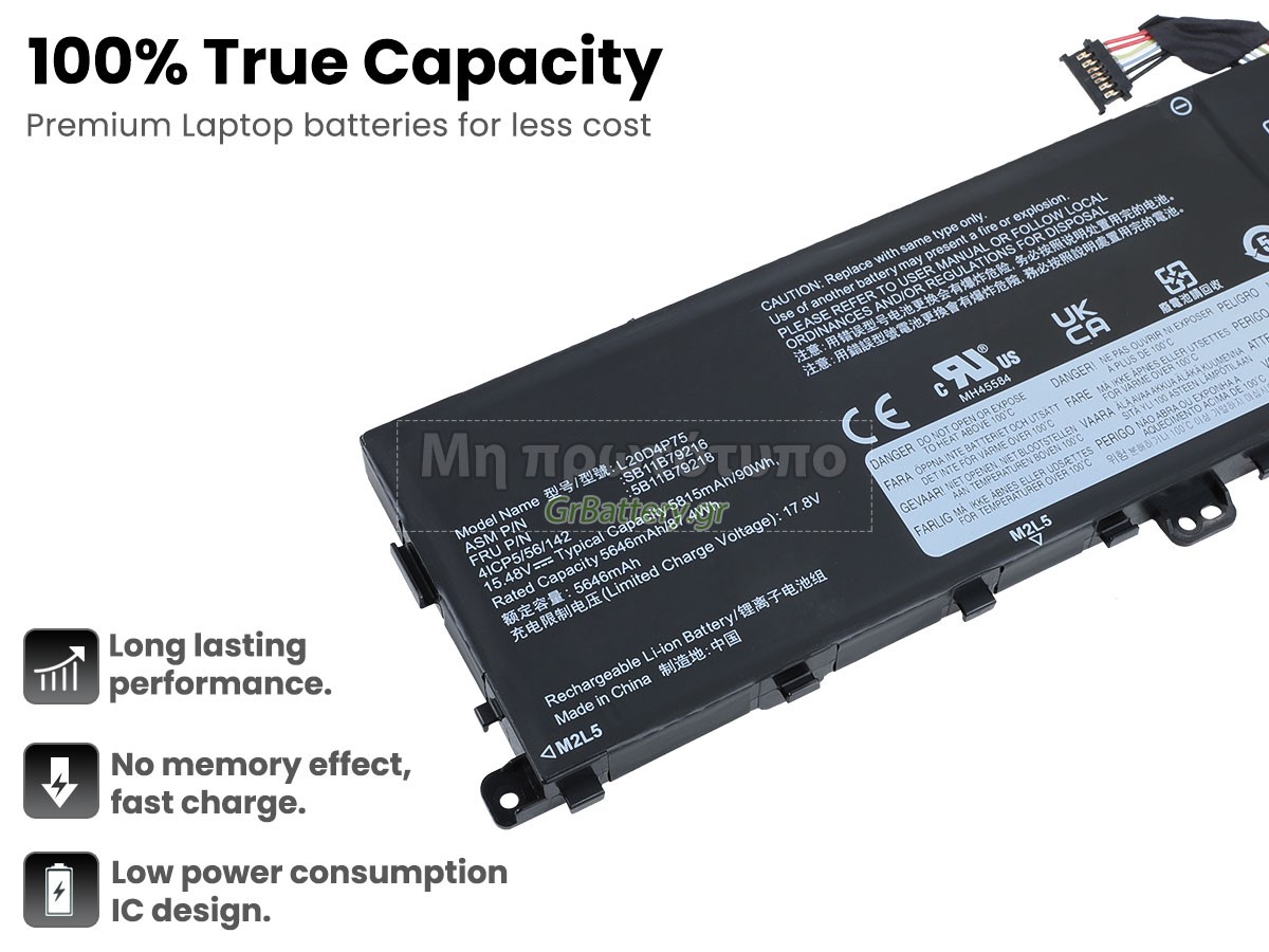 Δεν συνιστάται η αφαίρεση της μπαταρίας, έτσι ώστε να αποφευχθεί η συνέχιση της λειτουργίας της τροφοδοσίας εναλλασσόμενου ρεύματος σε περίπτωση ξαφνικής διακοπής, χωρίς απώλεια δεδομένων. Αν αφαιρεθεί, συνιστάται η περιτύλιξη της μπαταρίας Lenovo ThinkPad X1 EXTREME GEN 4-20Y5005BAT στην πλαστική μεμβράνη και η τοποθέτηση σε στεγνό και δροσερό μέρος, και να θυμάστε να χρησιμοποιείτε την μπαταρία τουλάχιστον μια φορά το μήνα και να την φορτίζετε για να αποφύγετε την απώλεια δράσης της μπαταρίας.