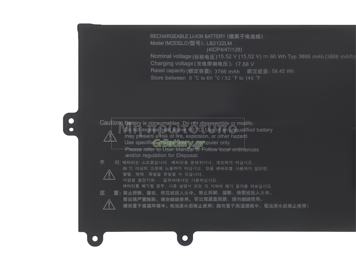 Δεν συνιστάται η αφαίρεση της μπαταρίας, έτσι ώστε να αποφευχθεί η συνέχιση της λειτουργίας της τροφοδοσίας εναλλασσόμενου ρεύματος σε περίπτωση ξαφνικής διακοπής, χωρίς απώλεια δεδομένων. Αν αφαιρεθεί, συνιστάται η περιτύλιξη της μπαταρίας LG GRAM 15 15Z90RT-N.APB7U1 στην πλαστική μεμβράνη και η τοποθέτηση σε στεγνό και δροσερό μέρος, και να θυμάστε να χρησιμοποιείτε την μπαταρία τουλάχιστον μια φορά το μήνα και να την φορτίζετε για να αποφύγετε την απώλεια δράσης της μπαταρίας.