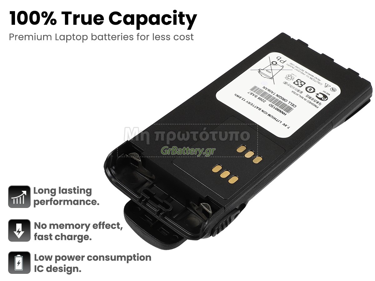 Δεν υπάρχει καμία διαφορά, εκτός από το ότι οι μπαταρίες μας δεν φέρουν ετικέτα. Όλες οι επαναφορτιζόμενες μπαταρίες που είναι διαθέσιμες στο xxx.com είναι εφεδρικές μπαταρίες του αρχικού κατασκευαστή. Χρησιμοποιούν τα ίδια έξυπνα τσιπ και στοιχεία όπως οι αυθεντικές, οπότε η απόδοση και η συμβατότητα της μπαταρίας Motorola GP1280 είναι παρόμοια ή και καλύτερη από την αυθεντικήεπαναφορτιζόμενη μπαταρία. Αυτό θα αφαιρέσει το τίμημα της μάρκας, διατηρώντας ταυτόχρονα την ποιότητα. Πολλοί καταναλωτές πιστεύουν ότι οι αυθεντικές μπαταρίες λειτουργούν καλύτερα. Στην πραγματικότητα, πολλές μάρκες μπαταριών για φορητούς υπολογιστές κατασκευάζονται επίσης από εξαρτήματα από τρίτους (όπως Samsung, LG, κ.λπ.). Ακριβώς όπως η CPU ενός δεν παράγεται από τηνίδιαεταιρεία υπολογιστών.