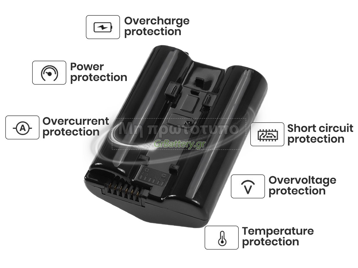 Η εντελώς νέα μας εφεδρική μπαταρία Nikon BL-5 αποτελείται από τα καλύτερα στοιχεία και εξαρτήματα. Οι μπαταρίες Nikon BL-5 που παρέχονται στο grbattery.gr έχουν περάσει δοκιμές UN38.3, RCM, CE, UL, ROHS, ISO9001/ISO9002 και άλλες διεθνείς πιστοποιήσεις. Προκειμένου να ελαχιστοποιηθούν οι κίνδυνοι ασφαλείας και να διασφαλιστεί η καλή εμπειρία του χρήστη, η μπαταρία Nikon BL-5 χρησιμοποιεί μια ποικιλία μέτρων προστασίας. Για παράδειγμα, προστασία θερμοκρασίας, προστασία κυκλώματος, προστασία υπερφόρτισης, προστασία υλικού, όριο ρεύματος εξόδου και άλλα μέτρα προστασίας.