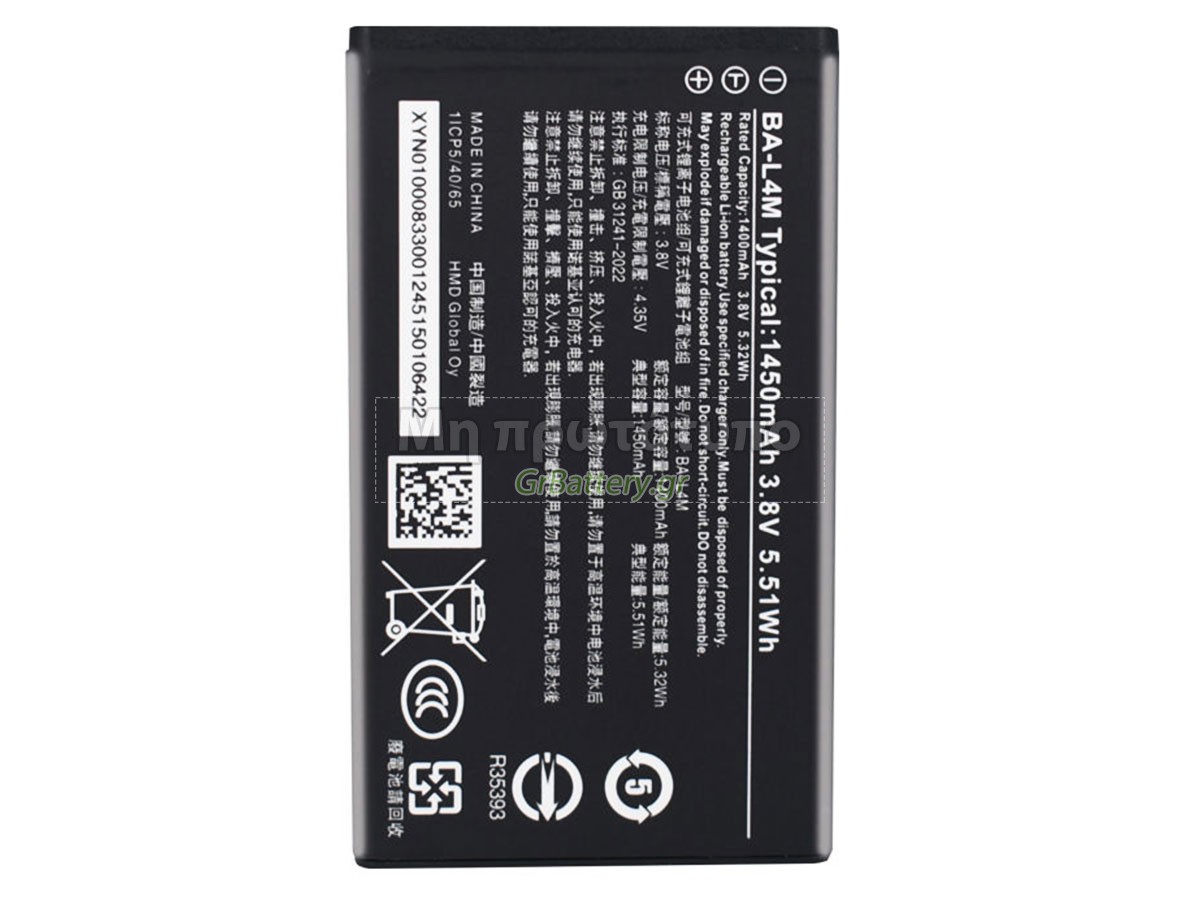 Δεν συνιστάται η αφαίρεση της μπαταρίας, έτσι ώστε να αποφευχθεί η συνέχιση της λειτουργίας της τροφοδοσίας εναλλασσόμενου ρεύματος σε περίπτωση ξαφνικής διακοπής, χωρίς απώλεια δεδομένων. Αν αφαιρεθεί, συνιστάται η περιτύλιξη της μπαταρίας Nokia BA-L4M στην πλαστική μεμβράνη και η τοποθέτηση σε στεγνό και δροσερό μέρος, και να θυμάστε να χρησιμοποιείτε την μπαταρία τουλάχιστον μια φορά το μήνα και να την φορτίζετε για να αποφύγετε την απώλεια δράσης της μπαταρίας.