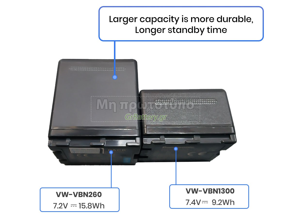 Because the battery VW-VBN260 has a larger capacity and size than VW-VBN130, a part of the battery will bulge out when installed, which will not affect the use. Η εντελώς νέα μας εφεδρική μπαταρία Panasonic HC-X900M αποτελείται από τα καλύτερα στοιχεία και εξαρτήματα. Οι μπαταρίες Panasonic HC-X900M που παρέχονται στο grbattery.gr έχουν περάσει δοκιμές UN38.3, RCM, CE, UL, ROHS, ISO9001/ISO9002 και άλλες διεθνείς πιστοποιήσεις. Προκειμένου να ελαχιστοποιηθούν οι κίνδυνοι ασφαλείας και να διασφαλιστεί η καλή εμπειρία του χρήστη, η μπαταρία Panasonic HC-X900M χρησιμοποιεί μια ποικιλία μέτρων προστασίας. Για παράδειγμα, προστασία θερμοκρασίας, προστασία κυκλώματος, προστασία υπερφόρτισης, προστασία υλικού, όριο ρεύματος εξόδου και άλλα μέτρα προστασίας.