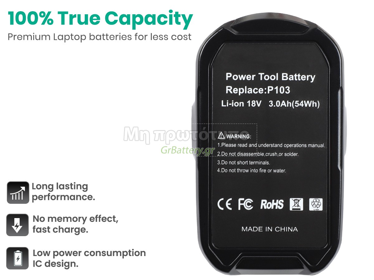 Δεν υπάρχει καμία διαφορά, εκτός από το ότι οι μπαταρίες μας δεν φέρουν ετικέτα. Όλες οι επαναφορτιζόμενες μπαταρίες που είναι διαθέσιμες στο xxx.com είναι εφεδρικές μπαταρίες του αρχικού κατασκευαστή. Χρησιμοποιούν τα ίδια έξυπνα τσιπ και στοιχεία όπως οι αυθεντικές, οπότε η απόδοση και η συμβατότητα της μπαταρίας Ryobi RB18L25 είναι παρόμοια ή και καλύτερη από την αυθεντικήεπαναφορτιζόμενη μπαταρία. Αυτό θα αφαιρέσει το τίμημα της μάρκας, διατηρώντας ταυτόχρονα την ποιότητα. Πολλοί καταναλωτές πιστεύουν ότι οι αυθεντικές μπαταρίες λειτουργούν καλύτερα. Στην πραγματικότητα, πολλές μάρκες μπαταριών για φορητούς υπολογιστές κατασκευάζονται επίσης από εξαρτήματα από τρίτους (όπως Samsung, LG, κ.λπ.). Ακριβώς όπως η CPU ενός δεν παράγεται από τηνίδιαεταιρεία υπολογιστών.