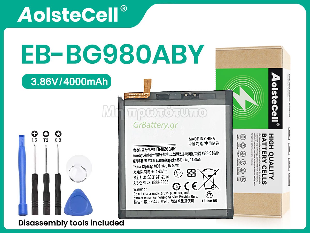 Η αντικατεστημένη μπαταρία του Samsung GALAXY S20 5G SM-G981U είναι εντελώς νέα. Ποτέ δεν θα πουλήσουμε χρησιμοποιημένες μπαταρίες ή ανακαινισμένες μπαταρίες. Οι μπαταρίες μας είναι κατασκευασμένες από τα καλύτερα στοιχεία και εξαρτήματα