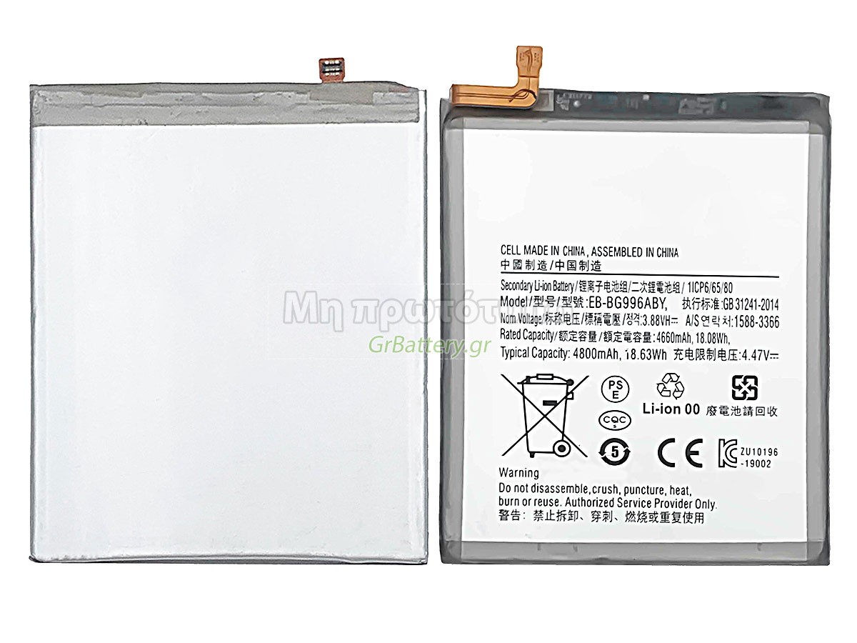 Η εντελώς νέα μας εφεδρική μπαταρία Samsung GALAXY S21+ 5G SM-G996W αποτελείται από τα καλύτερα στοιχεία και εξαρτήματα. Οι μπαταρίες Samsung GALAXY S21+ 5G SM-G996W που παρέχονται στο grbattery.gr έχουν περάσει δοκιμές UN38.3, RCM, CE, UL, ROHS, ISO9001/ISO9002 και άλλες διεθνείς πιστοποιήσεις. Προκειμένου να ελαχιστοποιηθούν οι κίνδυνοι ασφαλείας και να διασφαλιστεί η καλή εμπειρία του χρήστη, η μπαταρία Samsung GALAXY S21+ 5G SM-G996W χρησιμοποιεί μια ποικιλία μέτρων προστασίας. Για παράδειγμα, προστασία θερμοκρασίας, προστασία κυκλώματος, προστασία υπερφόρτισης, προστασία υλικού, όριο ρεύματος εξόδου και άλλα μέτρα προστασίας.