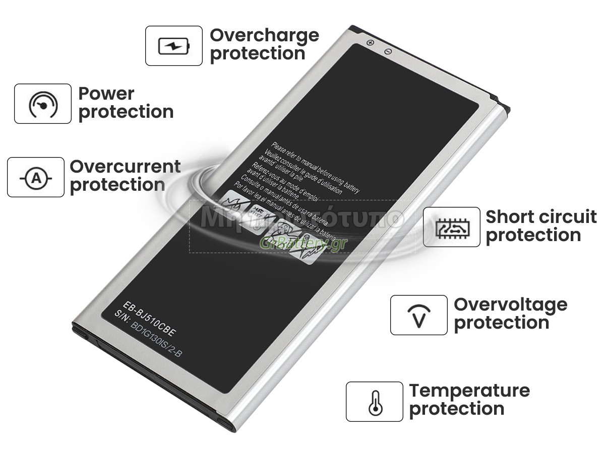 Η εντελώς νέα μας εφεδρική μπαταρία Samsung J510 αποτελείται από τα καλύτερα στοιχεία και εξαρτήματα. Οι μπαταρίες Samsung J510 που παρέχονται στο grbattery.gr έχουν περάσει δοκιμές UN38.3, RCM, CE, UL, ROHS, ISO9001/ISO9002 και άλλες διεθνείς πιστοποιήσεις. Προκειμένου να ελαχιστοποιηθούν οι κίνδυνοι ασφαλείας και να διασφαλιστεί η καλή εμπειρία του χρήστη, η μπαταρία Samsung J510 χρησιμοποιεί μια ποικιλία μέτρων προστασίας. Για παράδειγμα, προστασία θερμοκρασίας, προστασία κυκλώματος, προστασία υπερφόρτισης, προστασία υλικού, όριο ρεύματος εξόδου και άλλα μέτρα προστασίας.