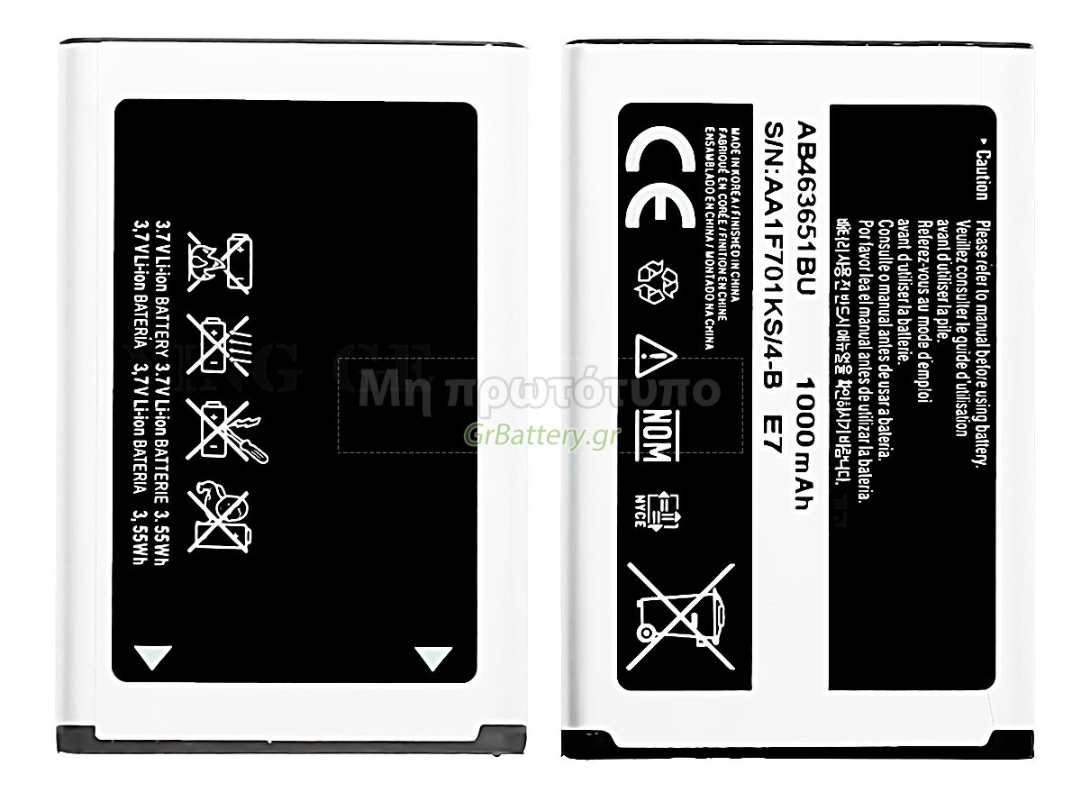 Δεν συνιστάται η αφαίρεση της μπαταρίας, έτσι ώστε να αποφευχθεί η συνέχιση της λειτουργίας της τροφοδοσίας εναλλασσόμενου ρεύματος σε περίπτωση ξαφνικής διακοπής, χωρίς απώλεια δεδομένων. Αν αφαιρεθεί, συνιστάται η περιτύλιξη της μπαταρίας Samsung S7070 DIVA στην πλαστική μεμβράνη και η τοποθέτηση σε στεγνό και δροσερό μέρος, και να θυμάστε να χρησιμοποιείτε την μπαταρία τουλάχιστον μια φορά το μήνα και να την φορτίζετε για να αποφύγετε την απώλεια δράσης της μπαταρίας.