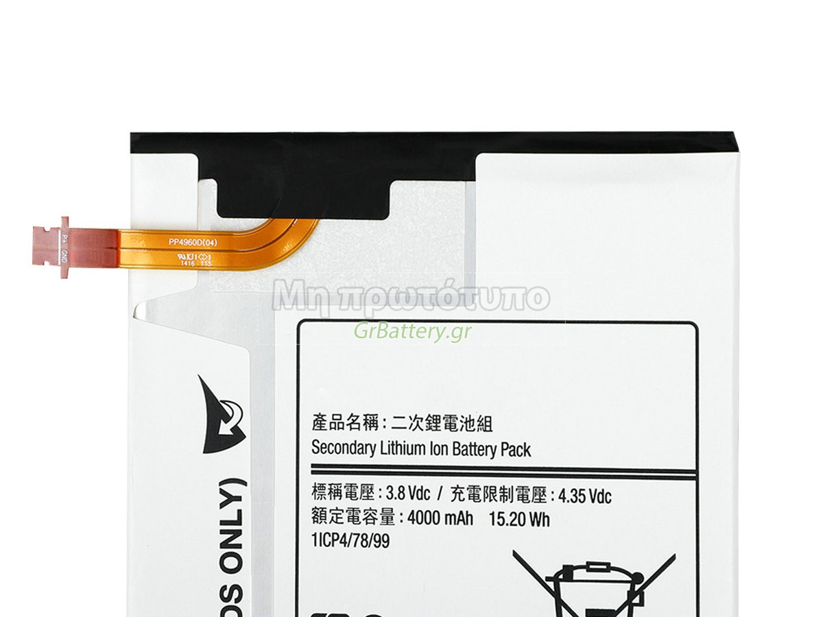 Δεν συνιστάται η αφαίρεση της μπαταρίας, έτσι ώστε να αποφευχθεί η συνέχιση της λειτουργίας της τροφοδοσίας εναλλασσόμενου ρεύματος σε περίπτωση ξαφνικής διακοπής, χωρίς απώλεια δεδομένων. Αν αφαιρεθεί, συνιστάται η περιτύλιξη της μπαταρίας Samsung SM-T235 στην πλαστική μεμβράνη και η τοποθέτηση σε στεγνό και δροσερό μέρος, και να θυμάστε να χρησιμοποιείτε την μπαταρία τουλάχιστον μια φορά το μήνα και να την φορτίζετε για να αποφύγετε την απώλεια δράσης της μπαταρίας.