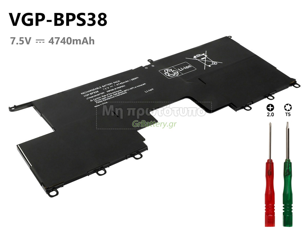 Δεν συνιστάται η αφαίρεση της μπαταρίας, έτσι ώστε να αποφευχθεί η συνέχιση της λειτουργίας της τροφοδοσίας εναλλασσόμενου ρεύματος σε περίπτωση ξαφνικής διακοπής, χωρίς απώλεια δεδομένων. Αν αφαιρεθεί, συνιστάται η περιτύλιξη της μπαταρίας Sony VGP-BPS38 στην πλαστική μεμβράνη και η τοποθέτηση σε στεγνό και δροσερό μέρος, και να θυμάστε να χρησιμοποιείτε την μπαταρία τουλάχιστον μια φορά το μήνα και να την φορτίζετε για να αποφύγετε την απώλεια δράσης της μπαταρίας.