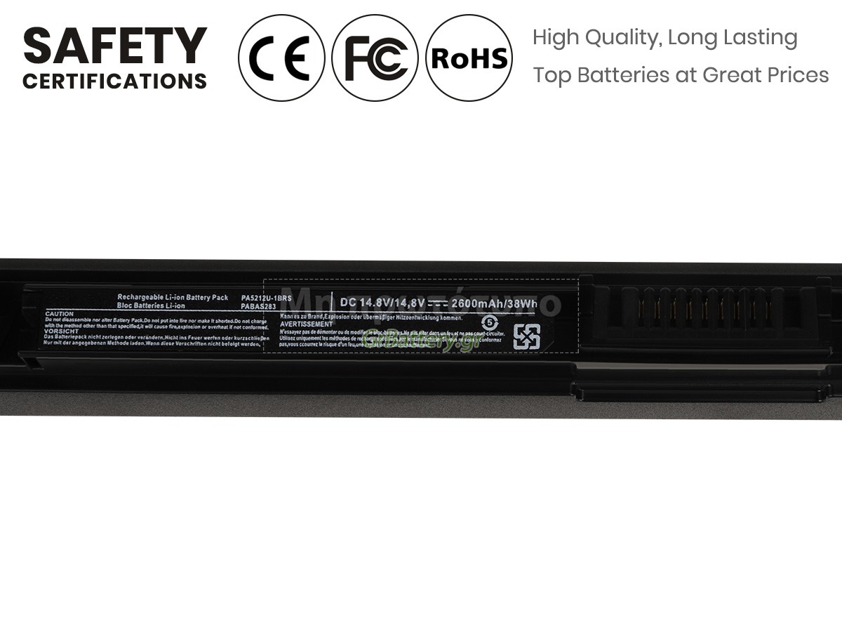 Η εντελώς νέα μας εφεδρική μπαταρία Toshiba PABAS283 αποτελείται από τα καλύτερα στοιχεία και εξαρτήματα. Οι μπαταρίες Toshiba PABAS283 που παρέχονται στο grbattery.gr έχουν περάσει δοκιμές UN38.3, RCM, CE, UL, ROHS, ISO9001/ISO9002 και άλλες διεθνείς πιστοποιήσεις. Προκειμένου να ελαχιστοποιηθούν οι κίνδυνοι ασφαλείας και να διασφαλιστεί η καλή εμπειρία του χρήστη, η μπαταρία φορητού υπολογιστή Toshiba PABAS283 χρησιμοποιεί μια ποικιλία μέτρων προστασίας. Για παράδειγμα, προστασία θερμοκρασίας, προστασία κυκλώματος, προστασία υπερφόρτισης, προστασία υλικού, όριο ρεύματος εξόδου και άλλα μέτρα προστασίας.