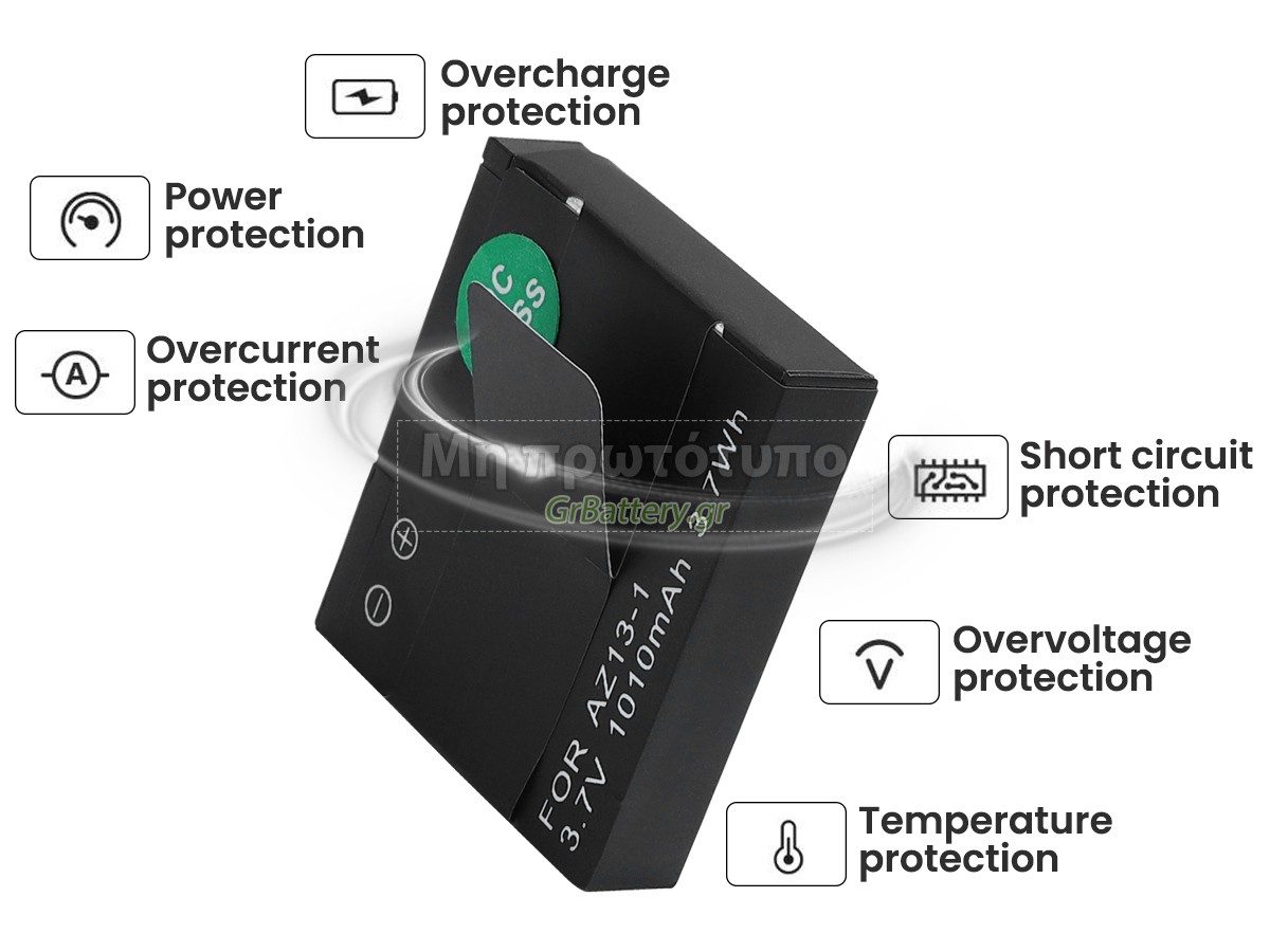 Η εντελώς νέα μας εφεδρική μπαταρία Xiaomi YI AZ13-1 αποτελείται από τα καλύτερα στοιχεία και εξαρτήματα. Οι μπαταρίες Xiaomi YI AZ13-1 που παρέχονται στο grbattery.gr έχουν περάσει δοκιμές UN38.3, RCM, CE, UL, ROHS, ISO9001/ISO9002 και άλλες διεθνείς πιστοποιήσεις. Προκειμένου να ελαχιστοποιηθούν οι κίνδυνοι ασφαλείας και να διασφαλιστεί η καλή εμπειρία του χρήστη, η μπαταρία Xiaomi YI AZ13-1 χρησιμοποιεί μια ποικιλία μέτρων προστασίας. Για παράδειγμα, προστασία θερμοκρασίας, προστασία κυκλώματος, προστασία υπερφόρτισης, προστασία υλικού, όριο ρεύματος εξόδου και άλλα μέτρα προστασίας.